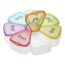 The dimensions of the container are 12 x 12 x 2.5 cm, and the dimensions of each compartment are 4 x 4.5 x 2 cm.